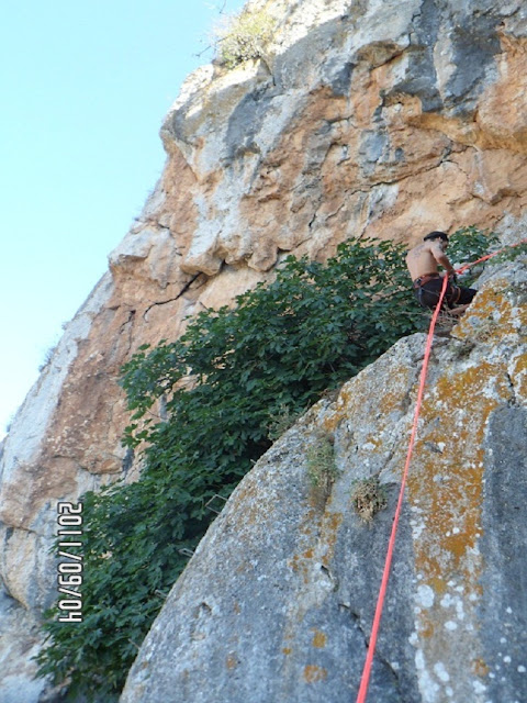 | Bajando haciendo rappel. |