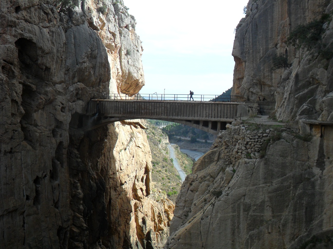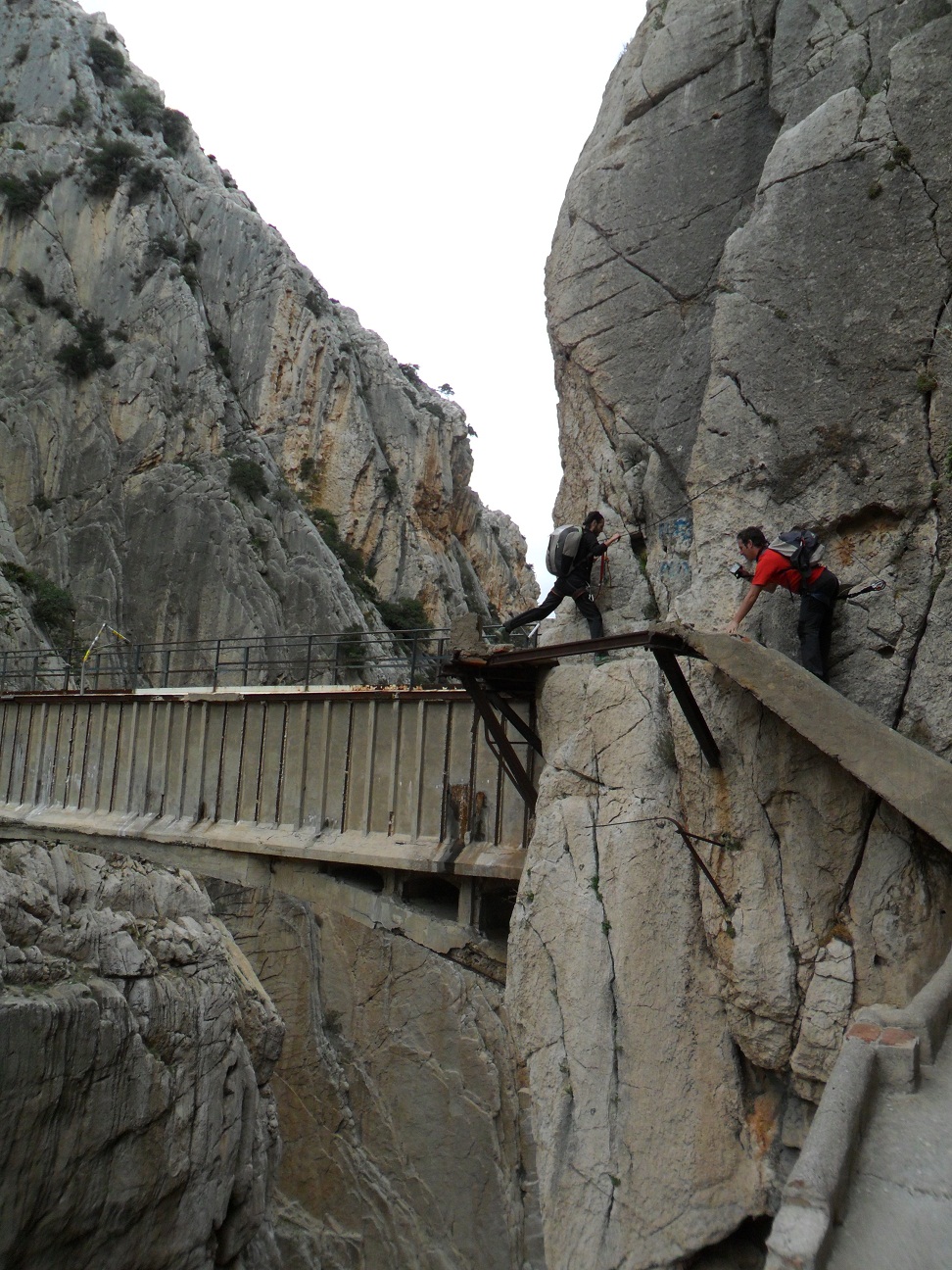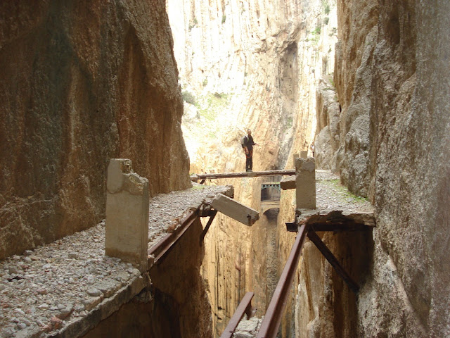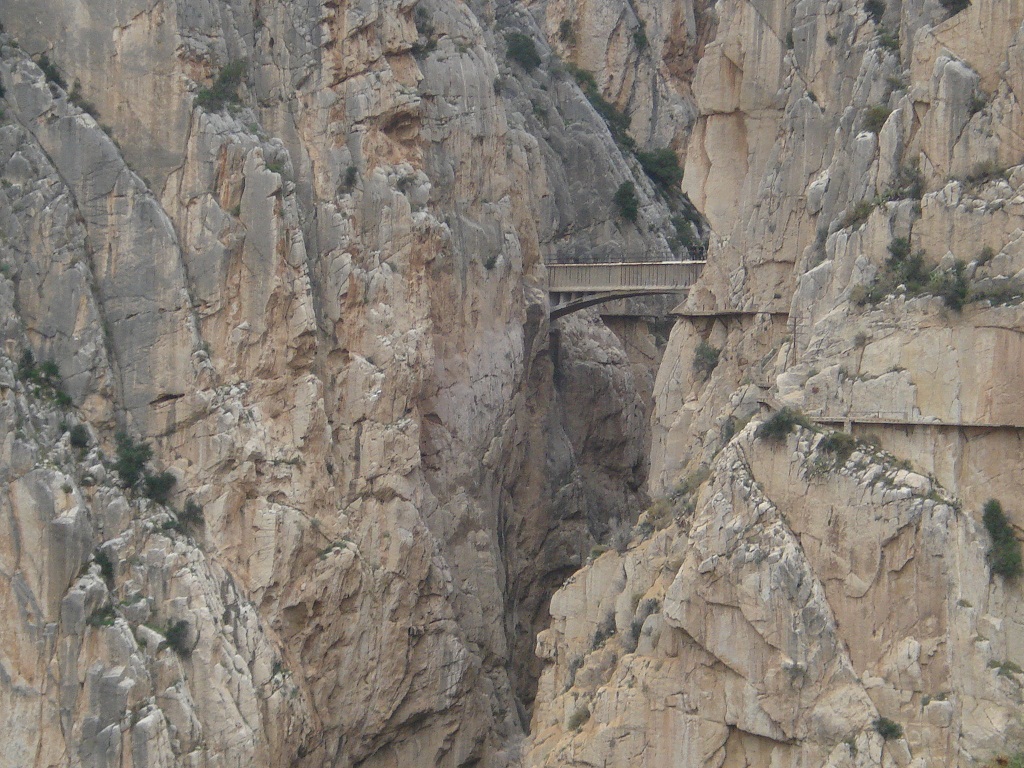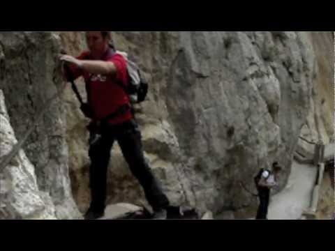 El Caminito del Rey es un paso construido en las paredes del Desfiladero de los Gaitanes en El Chorro (Málaga). Se trata de un paso peatonal o pasarela de 3 kilómetros, con largos tramos donde la anchura de la pasarela no supera el metro de anchura y cuelga a 200 metros del fondo del río. En unas paredes casi verticales, un cable improvisado se ha unido a la pared de roca en el primer cañón para que los caminantes y escaladores puedan asegurarse a el, con el fin de tener cierto grado de seguridad. Debido a la mala situación de la senda, con partes totalmente destruidas, y varios accidentes con un final malo, este caminito ha cogido cierto fama de peligroso.