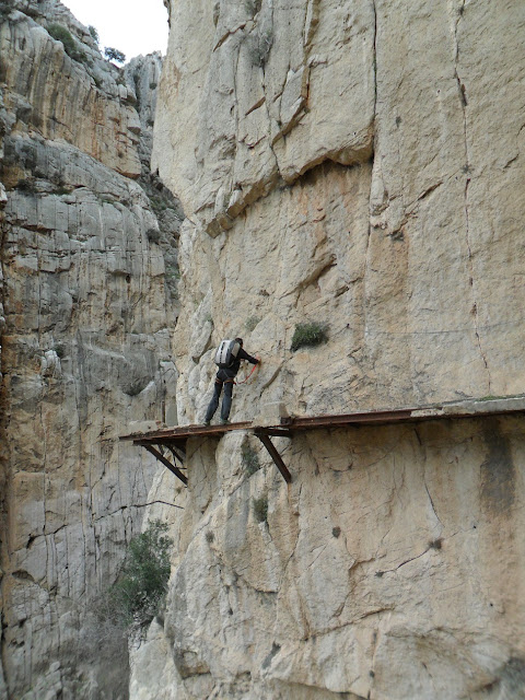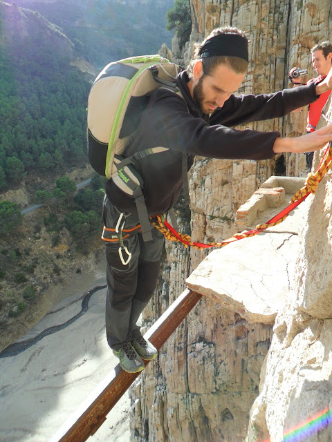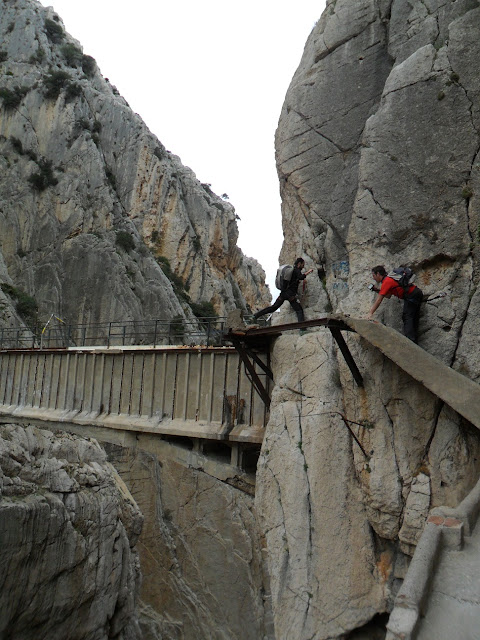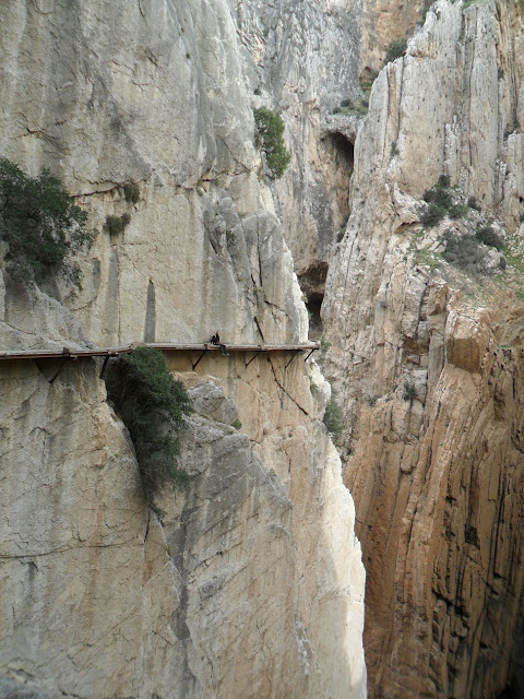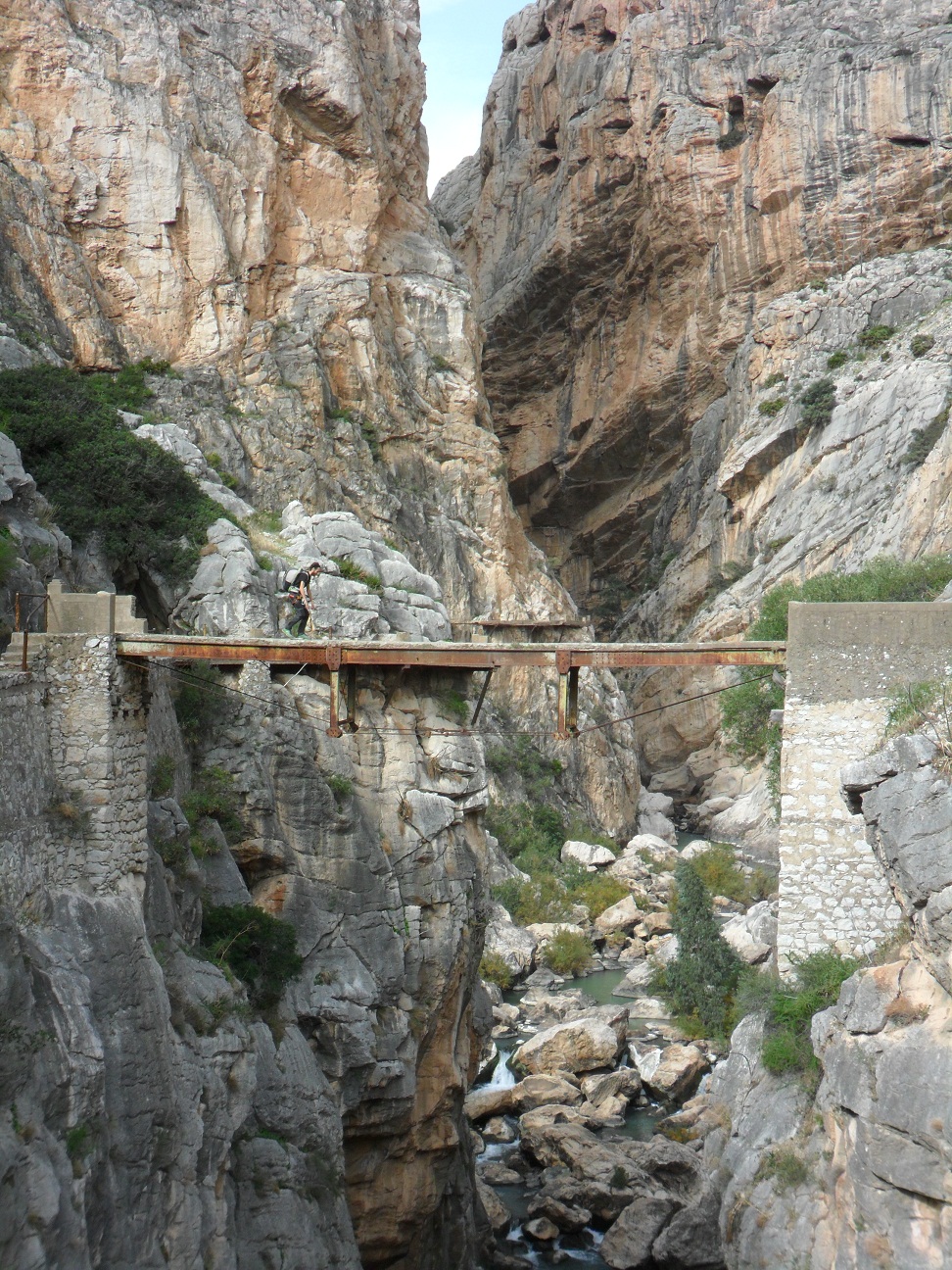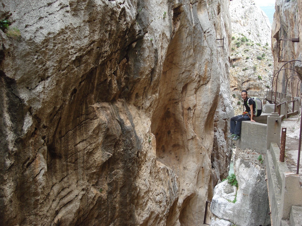 El Caminito del Rey es un paso construido en las paredes del Desfiladero de los Gaitanes en El Chorro (Málaga). Se trata de un paso peatonal o pasarela de 3 kilómetros, con largos tramos donde la anchura de la pasarela no supera el metro de anchura y cuelga a 200 metros del fondo del río. En unas paredes casi verticales, un cable improvisado se ha unido a la pared de roca en el primer cañón para que los caminantes y escaladores puedan asegurarse a el, con el fin de tener cierto grado de seguridad. Debido a la mala situación de la senda, con partes totalmente destruidas, y varios accidentes con un final malo, este caminito ha cogido cierto fama de peligroso.