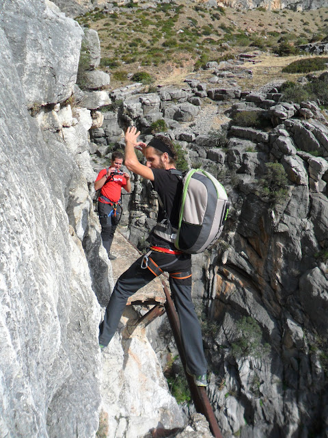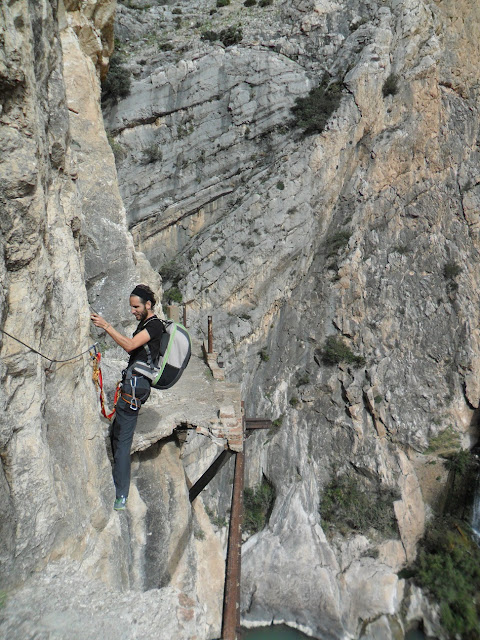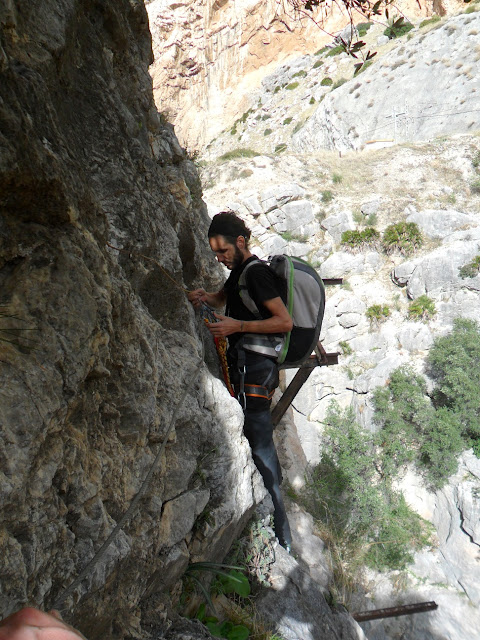 Paso complicado en el segundo cañon, todo el cañon sin cable de seguridad exceptuando algunos pasos malos, en este caso no había cable, instalados por alguien.