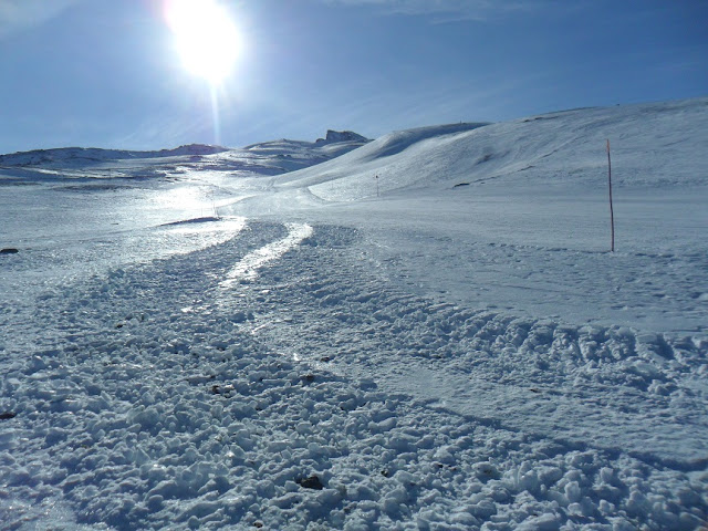 | Se me olvidaron en mi casa los bastones, y la subida es realmente fuerte, más incluso por una zona denominado "posiciones del Veleta". |