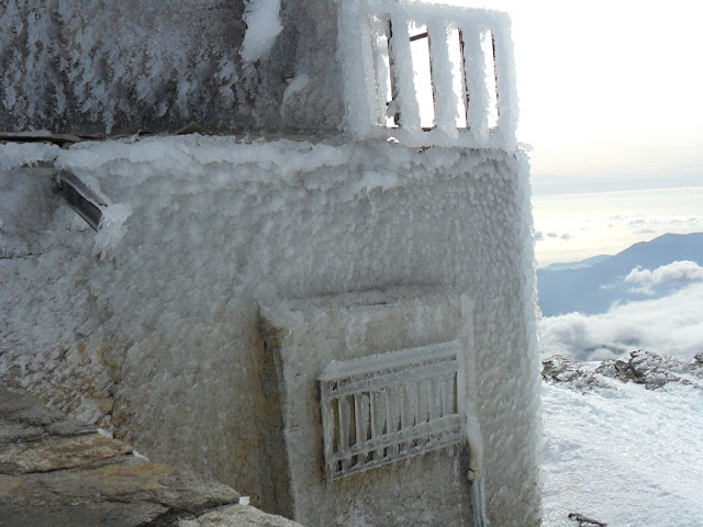 | Se puede apreciar el suelo totalmente de hielo. Imposible ascender sin crampones. |