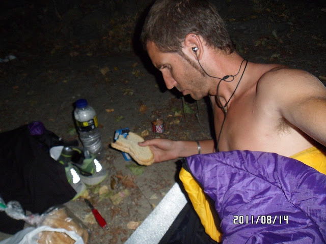 | Haciendo vivac, luna llena y lluvia de estrellas. |