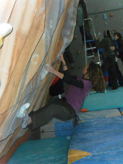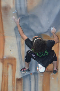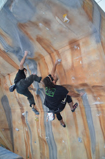 En la categoria de hombres, hubo unos 42 participante, pasaron a la final 21, o sea, la mitad. Mi compañero Eugenio paso a la final, aunque los problemas que pusieron a realizar fueron muy duros. Yo despues de superar el inconveniente de escalar en publico, no pude hacer una buena actuación, entre el frio y el recuerdo de mi perrito, no hubo forma. Pero fue un dia enriquecedor.