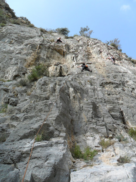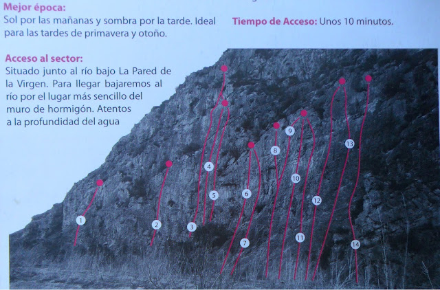 Hice prácticamente todas las vias del sector: Dodotis 6a, Dalcy V, Supernany V, Huggies V, Po V , Dixi 6a, Peter Pan 6a+. Sacado de la guía de escalada en Granada, aunque no coincido en los grados, pues pienso que se quedan cortos. Por ultimo como siempre, dar las gracias a la compañía, Belén, sin tí nada de esto sería posible.