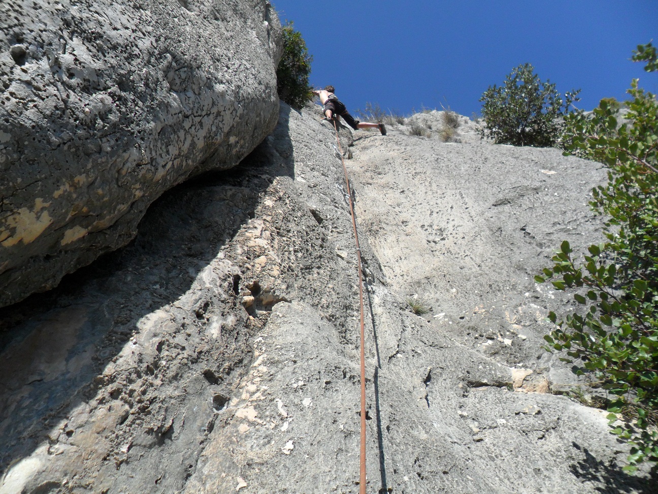 (Aquí comienza una pared más o menos homogénea con varias vías de placa vertical)