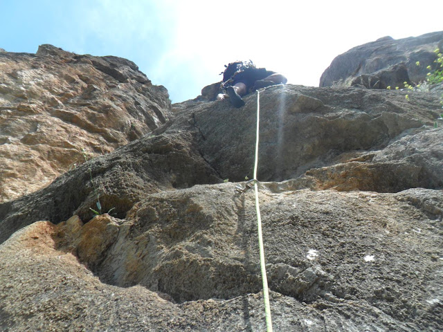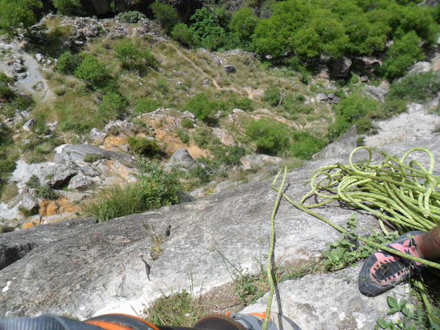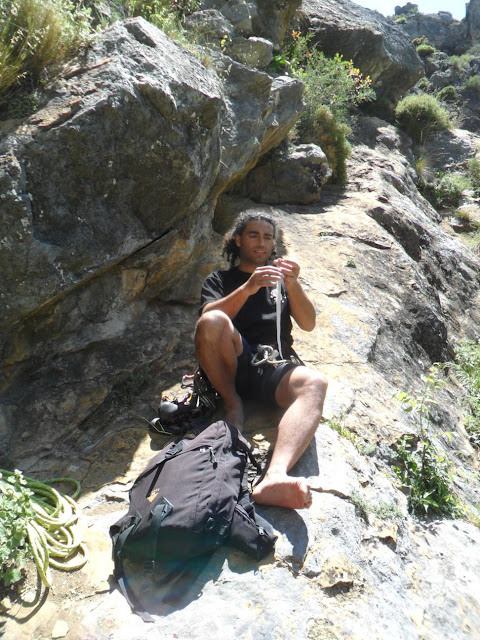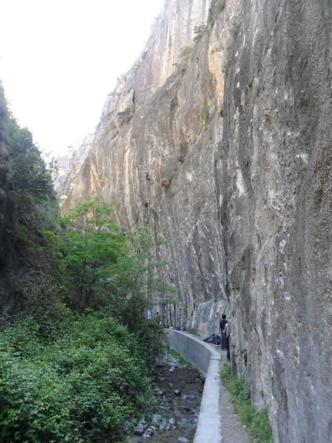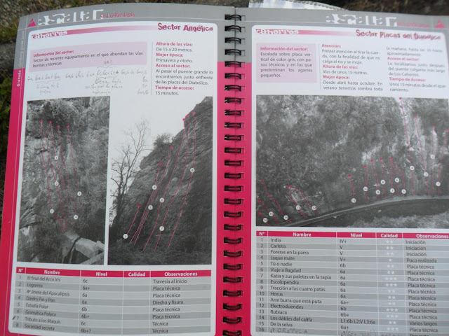 entorno muy bello y permite escalar en todas las épocas del año y a todas horas. También estuvimos en el "Sector Angelico". No puedo decir que estuve muy fino, ya que esta escuela de escalada tiene un grado (normalmente hay que sumarle un grado y medio más a lo que pone en las guias) y una roca muy peculiar, y ya sea por mi baja forma o por mi poca exigencia no pude encadenar grandes cosas. Si a varias horas de escalada en roca le añadimos un bonito y placentero senderismo por el Río Monachil, da como resultado un fantastico y completo día para recordar. Como siempre, gracias Eugenio por ofrecerme la posibilidad de pasar las horas como más me gusta.