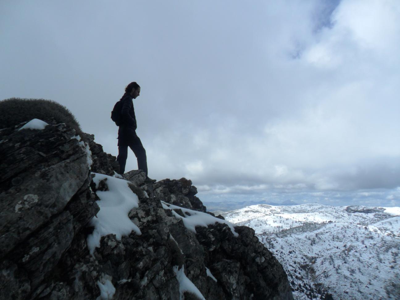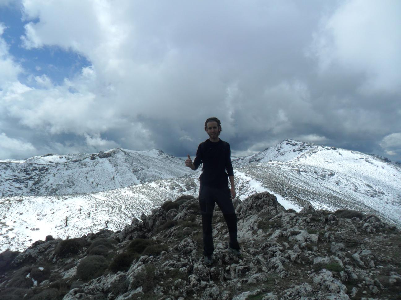 Pocas situaciones transmiten esa sensación de paz infinita y plenitud, como la que se vive al coronar una gran montaña, que en aquellos instantes se encontraba totalmente inmersa bajo el manto de nubes que se extendía hacia el Mediterráneo, mientras que por la cara Norte comenzaba a disiparse, permitiéndonos contemplar gran parte de la Sierra de las Nieves, haciendo honor a su nombre, bajo un cielo azul espectacular. Desde aquí me dirigí por la arista hasta el Cerro Fatalandá, 1.707 metros, y bajada hacia la cañada de las Carnicerias para subir hasta el Peñon de los Enamorados y bajar a Puerto Saucillo para hacer noche allí.