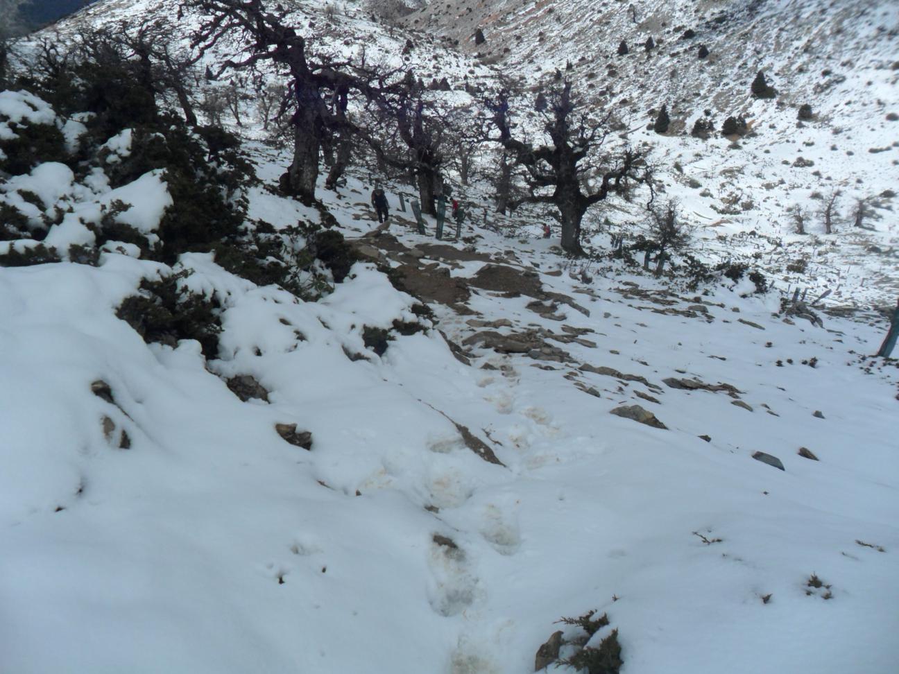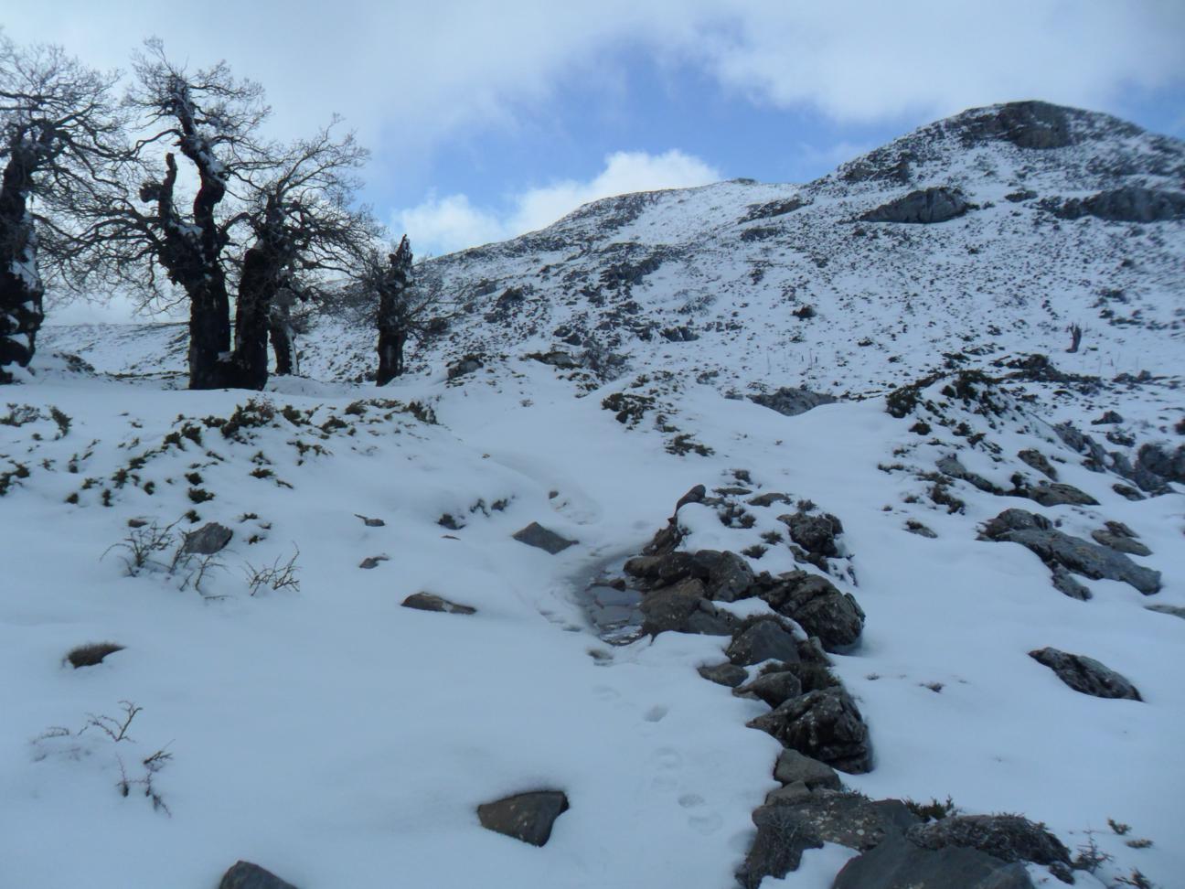 | Camino entre nieve y Quejigos. |