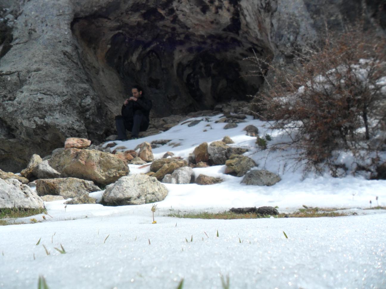 | Pequeño descanso en una cueva idónea para vivaquear. |