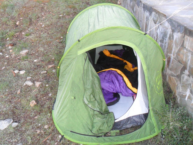 Mi idea era una ruta distinta a la que realice, cuando llegué a Puerto Saucillo me di cuenta que se me había olvidado la mochila donde tenia la tienda y el saco de las travesias de varios días, menos mal que siempre llevo en el maletero la Quechua 2" de una persona y un saco. Como no son fáciles de transportar, la mejor solución era pasar la noche cerca del coche.