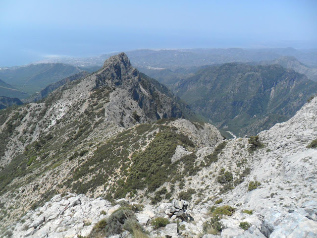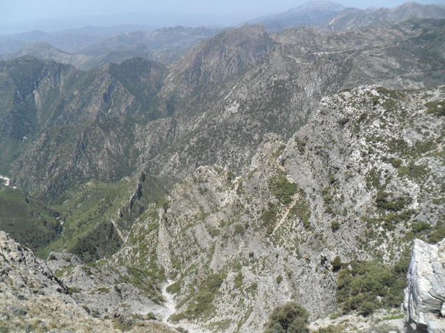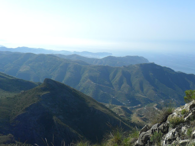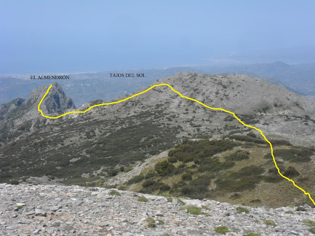 Hoy me levanté con ganas de darme caña y escribir un post, así que me dije -hoy me llevo la cámara-. La ruta realizada ha sido en la Sierra Almijara, dejando el coche en las Cuevas de Nerja (60 metros), aunque el carril que sube al Área Recreativa del Pinarillo lo han dejado perfecto, he subido al Pico del Cielo (1.511 metros), desde allá arriba he realizado la travesía por la cuerda que lo une con el Navachica (1.830 metros), la bajada la he realizado por los Tajos del Sol (1.685 metros) y Nido del Buitre (1.544 metros), para posteriormente desviarme y ascender al Almendrón (1.507 metros), para finalmente bajar al Área Recreativa Pinarillo para descansar y seguir la pista forestal hasta las Cuevas de Nerja (60 metros). No se los kilómetros que he realizado (sobre unos 35), pero ha sido una buena caminata, en la cual he trotado en algunos tramos, he tardado unas 7 horas sin forzar mucho. Al final me voy a tener que comprar un GPS para recopilar datos.