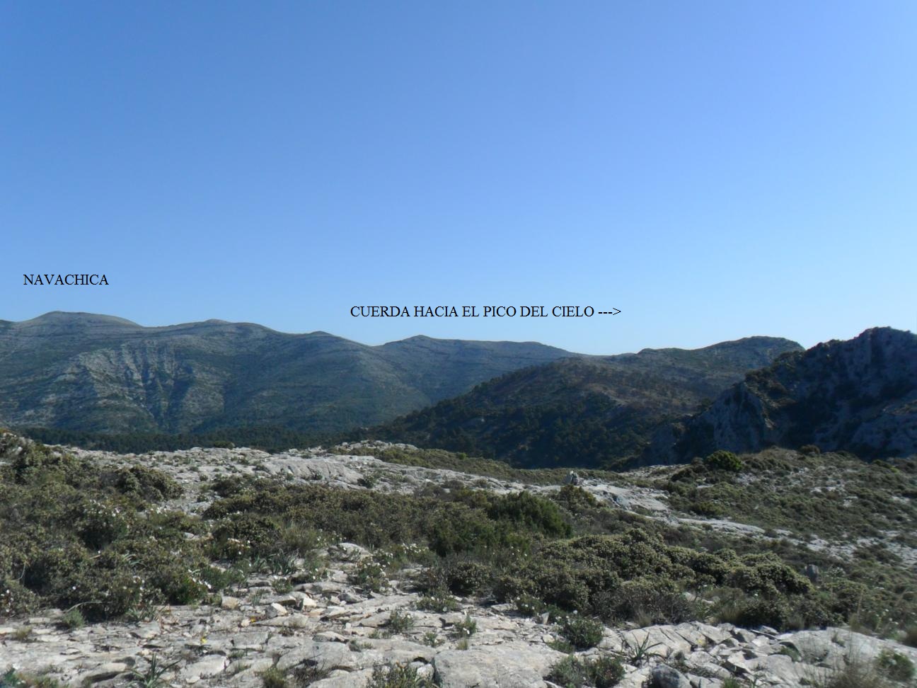 | Sendero/cuerda hacia el Navachica. 1.830 metros. |