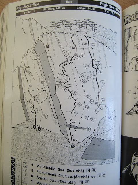 Un día formidable escalando una de las zonas mas bellas y conocidas de Suiza, el Monte Rigi-Hochflue. Con un amigo llamado Kurt, hermano de mi compañera de piso, el cual ya conocía la zona, estuvimos en: