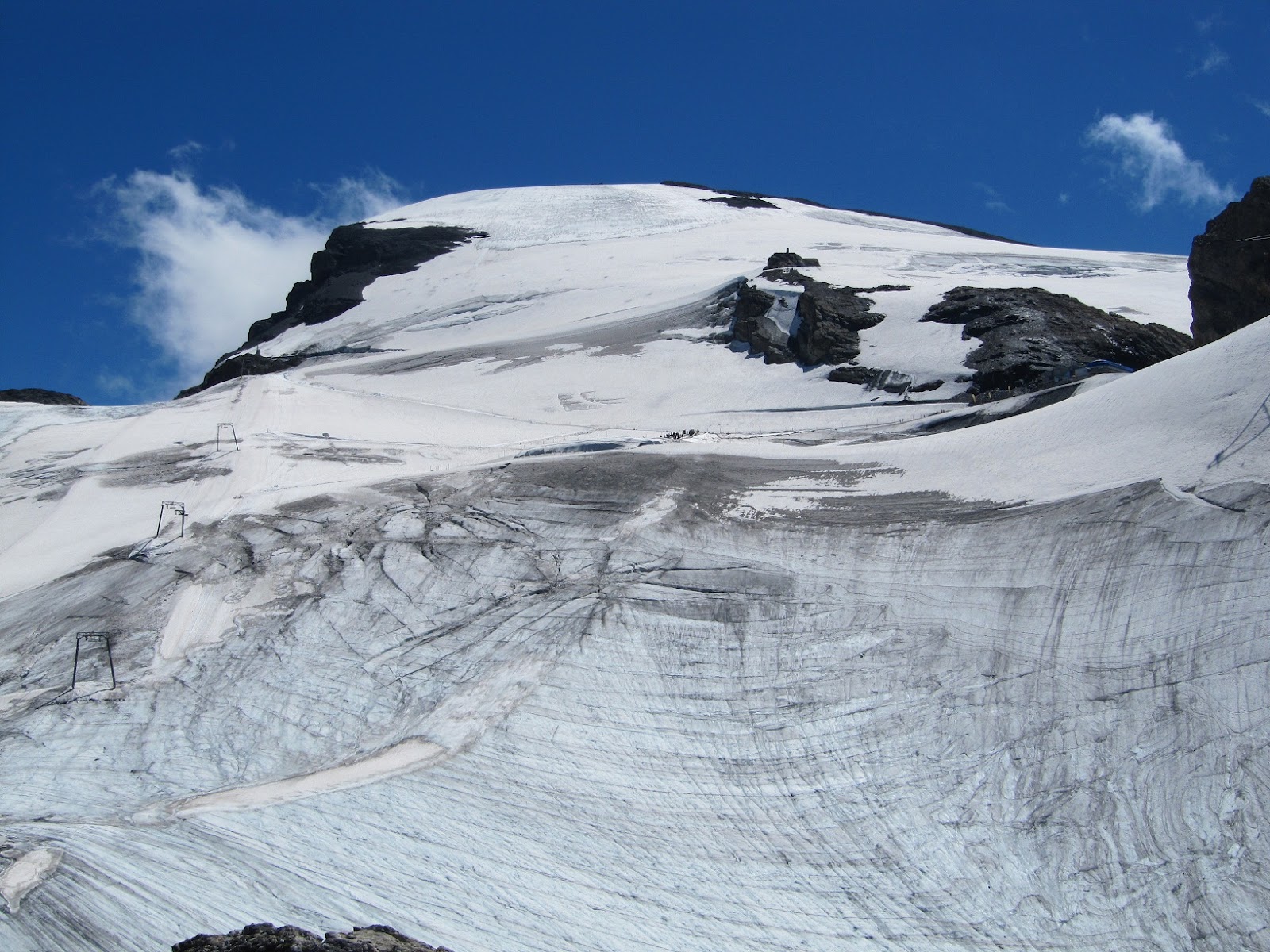 La primera cima es el Klein Titlis, hasta donde llega los telecabinas, se encuentra a 3.062 metros, había muchos turistas, andando por las pistas de esquí que da acceso a los restaurantes.