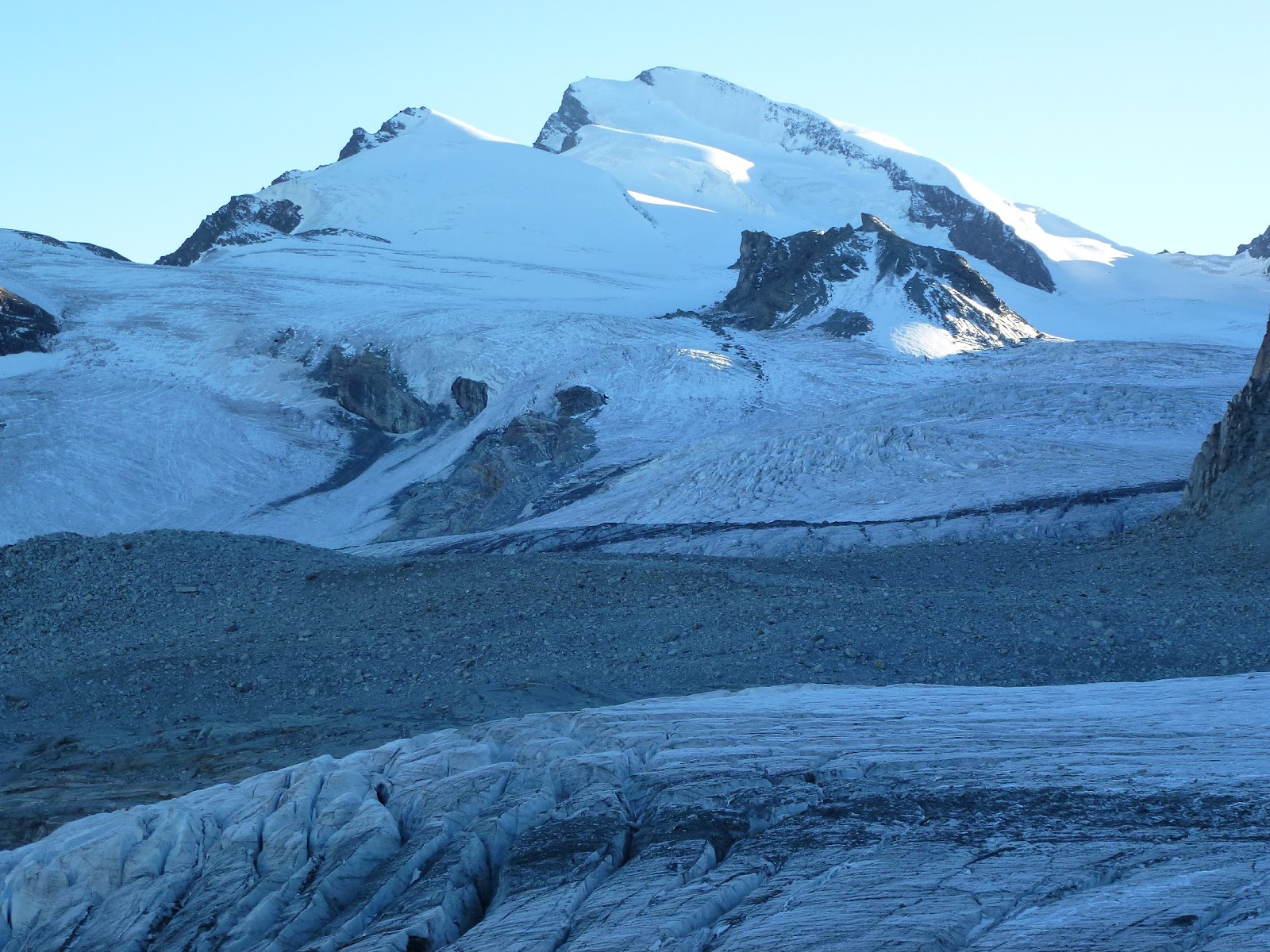 | Vistas desde el vivac, hacia el glaciar y Allalinhorn. |