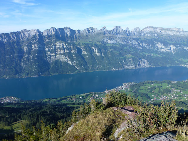 El otoño hace tiempo que se instaló en Suiza, son muchos los días de lluvias y pocos los de sol. Anoche mirando el tiempo en la "Suisse", interpreté que disponía de un día y medio de tiempo estable. Así que me fuí a la pared donde tengo el mapa topográfico gigante de Suiza y pensé: ¿Qué valle podria ir a descubir?, el elegido fue la región de San Gallen y Glarus, como no sabía con cual quedarme, hice un poco de ambos, o eso creo. No se muy bien explicar el recorrido, lo único que puedo aportar es que comencé en la localidad de Engi. Paralelo a un arroyo, todo muy verde y muchos afuentes con agua, un lugar maravilloso. Al llegar a una cresta he continuado hacia el famoso Pico Spitzmeilen con 2.501 metros, no por su altitud, sino por la forma que tiene de diente, para subir, desde la base, hay un canuto de unos 40 metros con cuerdas fijas instaladas para facilitar la subida. Después de un merecido bocadillo, he bajado para continuar hacia el Wissmilenpass (2.483 metros). Como no quería bajar hacia el lago Walensee me desvié hacia Murgsee y un pico que había cerca, desconozco el nombre. Luego descendí un poco para pasar la noche en un precioso bosque de pinos. Al día siguiente bajé a Murg con idea de seguir caminando pero el mal tiempo ya se me echo encima.