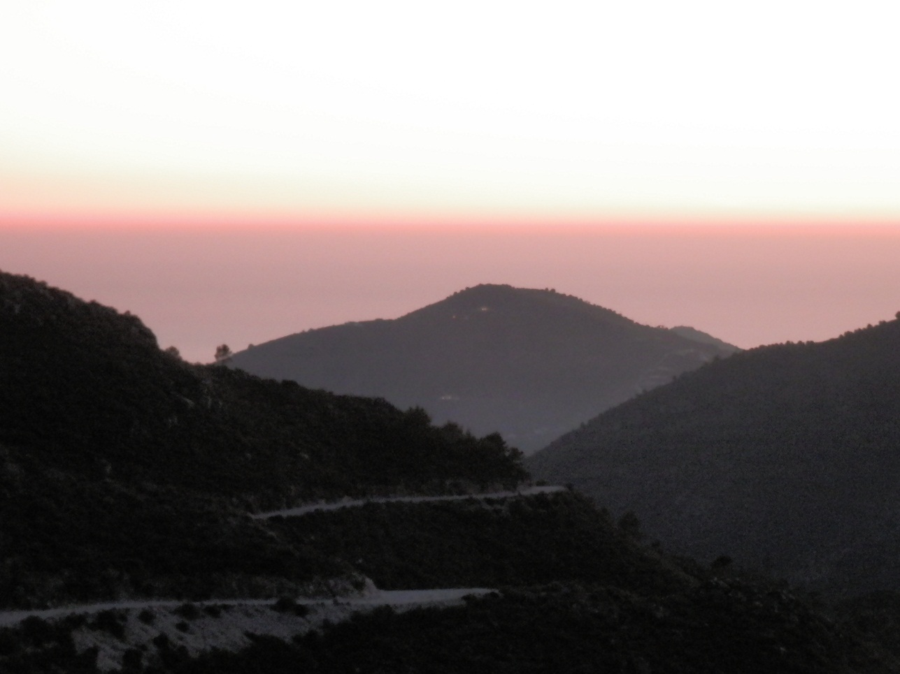 | Atardeciendo por la pista que Cómpeta con Frigiliana. |