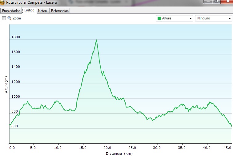 Al final han salido 46 kilómetros, con 2.506 metros de desnivel positivo y 2.506 negativos. Lo mejor de esta ruta es que no pasas por la espantosa cantera de marmol.