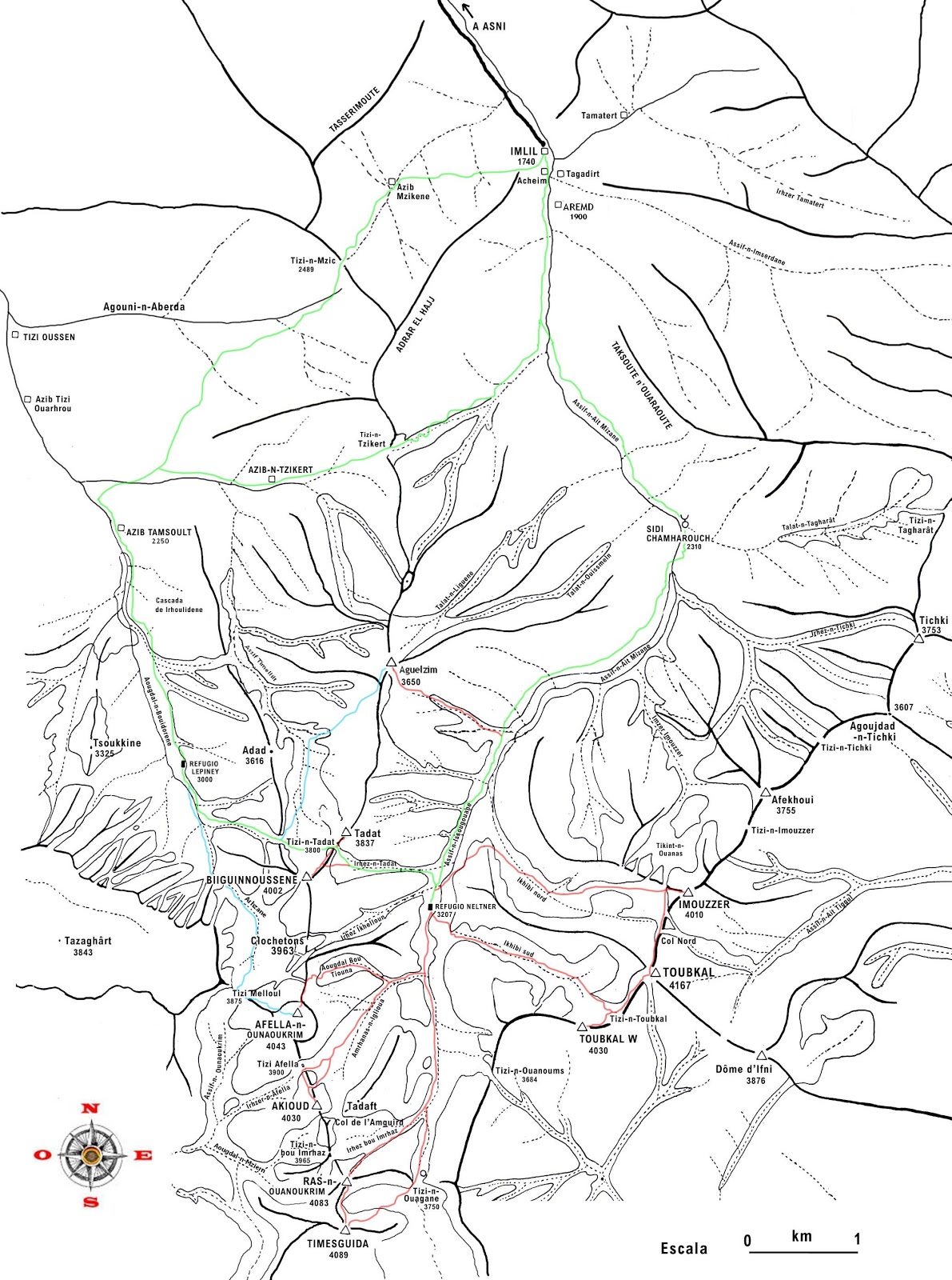 | Ruta circular al Toubkal, pasando por el Imouzzer. |