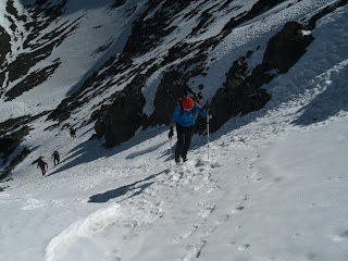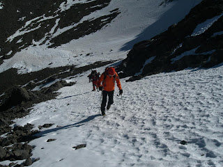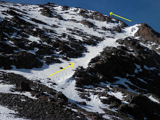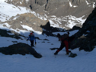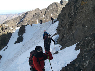 | Travesía hacia el corredor norte del Toubkal Oeste. |