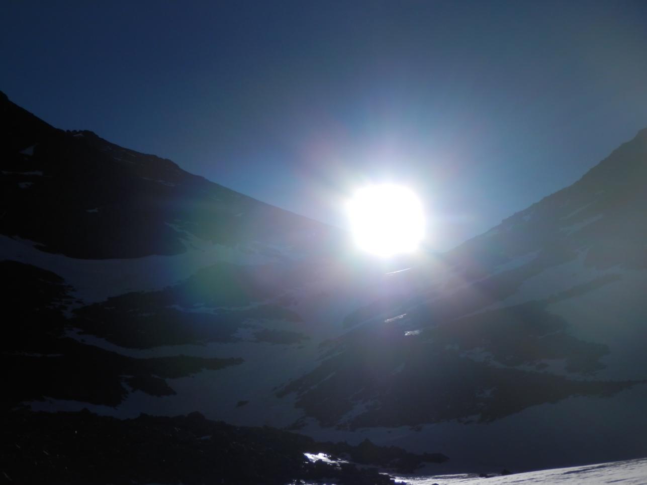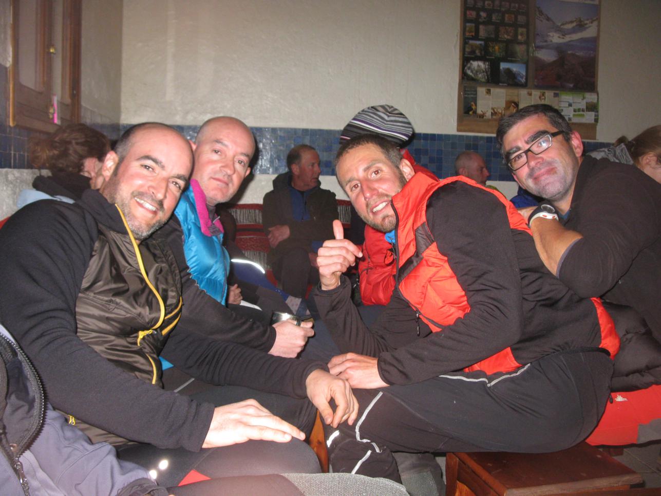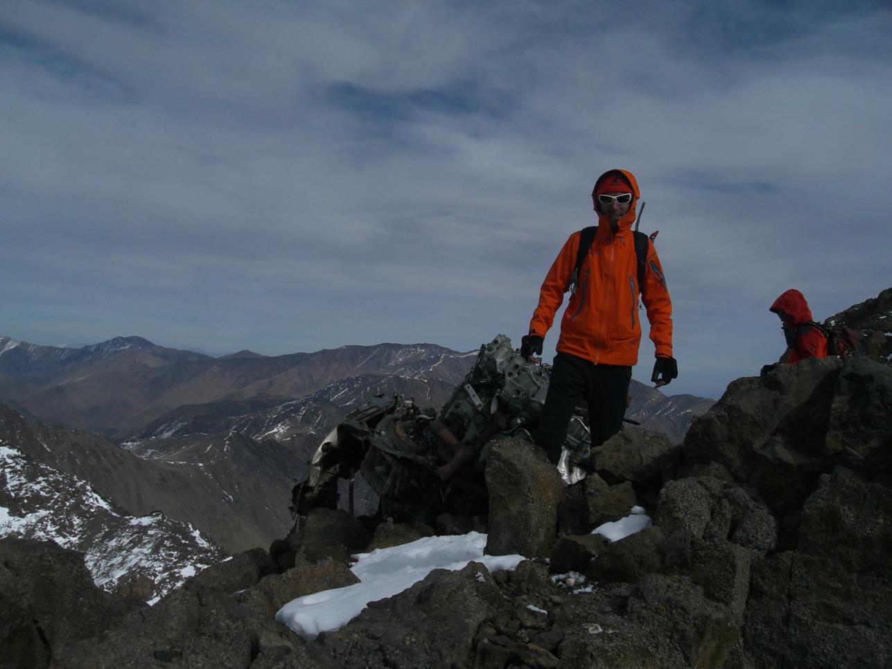 Con cuidado volvemos a deshacer el camino realizado, mi amigo Paco, le hacía mucha ilusión, encontrar los restos del avión que se estrelló en 1969, donde murieron 8 personas, así que como bien nos habían indicado, se encontraban en la ascensión a un pico cerca del collado donde nos encontrábamos, por suerte para todos, dimos con los restos y justo en la cima, se encuentra algo como poco sorprendente, el motor. La bajada la hicimos directa hasta el Ikhibi norte en dirección al refugio. La bajada es muy similar al valle sur pero está vez mucho más tranquila y sin restos de huella ni camino. Desde el collado norte descendemos por la vertiente derecha del valle para salvar un resalte rocoso que corta la parte izquierda del valle. Una vez superado, el valle se orienta hacia el NW y llegamos a un balcón que preside el Assif Mizane (río principal) y desde donde divisamos a nuestra izquierda el llano del refugio. Hacia allí nos dirigimos mediante un flanqueo en diagonal descendente. Llegamos al refugio después de una estupenda ruta circular y tres cimas de 4.000 metros ascendidas, pero lo mejor del día fue la compañía y el trato tan bueno que he recibido de este grupo.