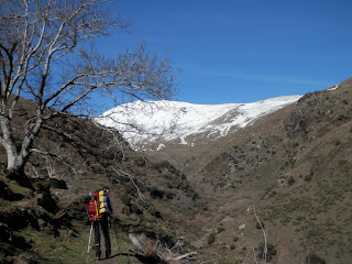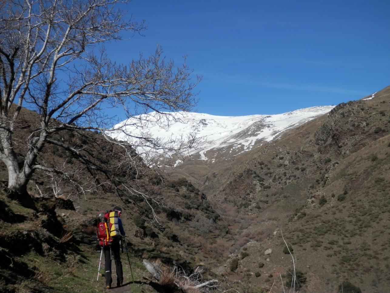 Esto es un breve resumen de dos días por Sierra Nevada, nada especial que contar, pero especial agradecimiento a mi amigo Ángel. Un tipo genial que vino a recogerme a Velez-Málaga para ir juntos y realizar alguna actividad por Sierra Nevada. La idea inicial era subir por el corredor de Siete Lagunas y subir a la Alcazaba, pero por varias razones, mucha nieve, peligro alto de aludes, tomamos otra decisión menos exigente pero igual de divertida. Desde la Central Eléctrica de Capileira subimos hasta el Refugio Poqueira, tras un pequeño descanso, alcanzamos el Refugio de la Caldera, en el cual pasemos la noche. Una noche muy fría, durante el día y ascenso hacia unos cuatro grados negativos, pero por la noche, dentro del refugio lleguemos a los menos seis grados. Alguien se había dejado las puertas del refugio abiertas y hubo que sacar mucha nieve, hay que ser responsable y cerrar las puertas al igual que mantenerlo limpio, es un refugio de todos y de todos es responsabilidad. Después de unos fideos chinos y arroz nos acostamos, no antes de derretir el agua que usaríamos por la noche. El entorno donde nos encontramos a la mañana siguiente es fascinante, por su vertiente sur, forma el circo glaciar de La Caldera, una laguna de buen tamaño (la mayor de la cordillera), en la cabecera del río Poqueira. Subimos al Puntal de la Caldera, con sus 3.226 metros, la sexta cumbre más alta de Sierra Nevada, desde el collado del Ciervo y luego al Mulhacén por la cara Oeste. Había una cantidad de nieve impresionante, la virgen de la cima del Mulhacén estaba enterrada. La bajada por la loma hasta el Refugio Poqueira y Central eléctrica.