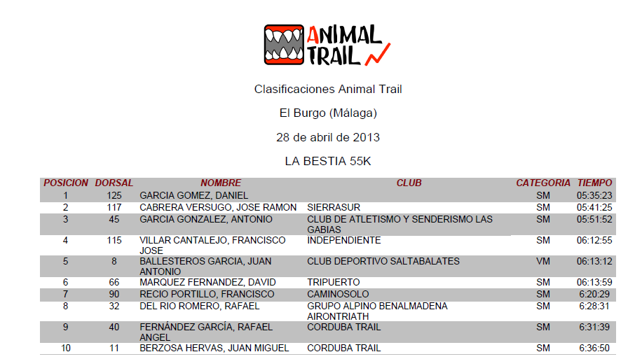 cuidado, para tropezar, para saltar, momentos para aguantar el tipo, momentos para atacar... una maravilla al igual que la organización, una pena el pequeño error del voluntario de protección civil. Estoy ansioso por participar en otra, que espero que sea dentro de dos semanas en los 101 de Ronda. Podéis ver la clasificación de la carrera en este