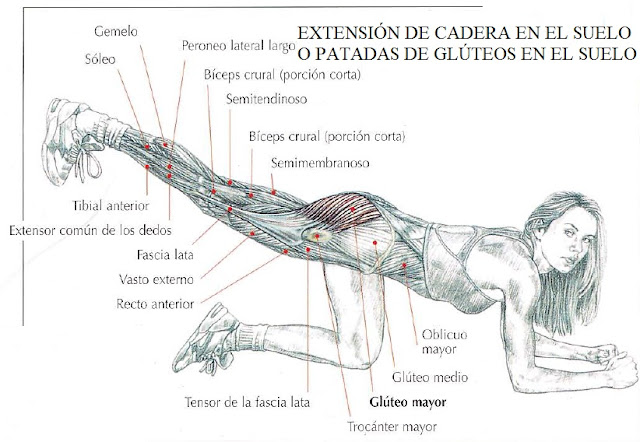 La extensión de cadera para glúteos es uno de los ejercicios más clásicos que existen, pero uno de los más infalibles al respecto. Para su ejecución nos colocaremos en el suelo a cuatro patas, apoyaremos los antebrazos al suelo, de modo que las manos queden libres y los codos apoyados por completo. La espalda debe mantenerse recta a lo largo de todo el ejercicio, y para ello nos apoyaremos con las piernas de rodillas. Partiendo de esta posición lo que debemos hacer es un movimiento muy sencillo, ya que simplemente debemos echar una de las piernas, la que no está apoyada en el suelo hacia atrás. La manera de hacerlo será concentrando todo el movimiento en la parte de las caderas y los glúteos, nunca en la espalda o la zona lumbar. Mantener unos segundos la pierna extendida antes de bajar y realizar nuevamente el movimiento.