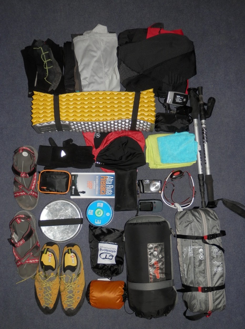 | El equipo que voy a llevarme a la Alta Ruta Pirenaica, falta la comida. |