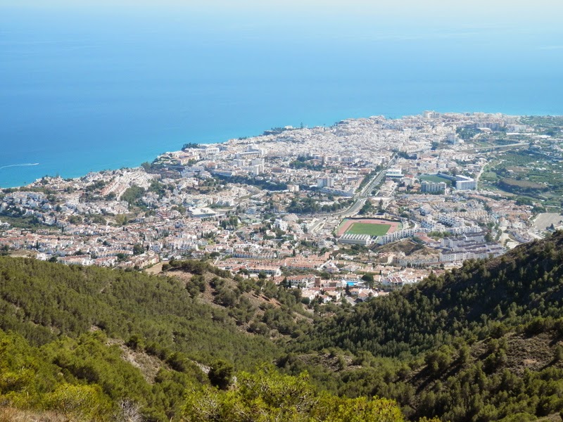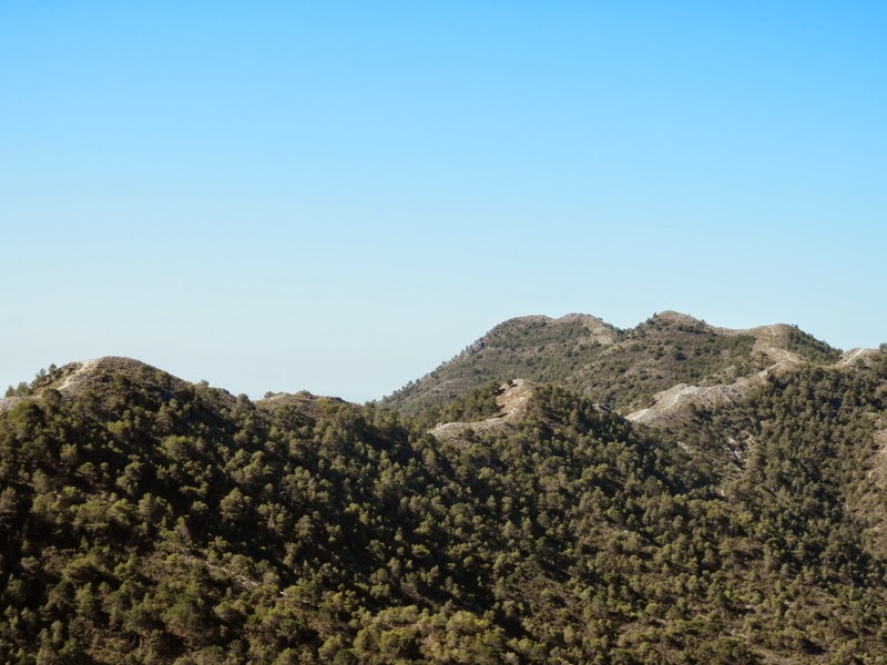 Luego continué por la cuerda que bordea por el oeste el Valle del Arroyo de la Coladilla que posee un pulmón verde impresionante. En los últimos 16 años que llevo viendo estos paisajes, he visto crecer los pequeños plantones de pinos y transformarse en preciosos ejemplares adultos. En la citada cuerda, hay una vereda que la recorre, pasamos por los cerros Mangüeno, Boniato y Tragalamocha, dejando a nuestra derecha, primero una bifurcación hacia el comienzo del río Chillar y luego otra hacia Nerja, para terminar saliendo por una fuerte pendiente a un carril que da acceso al barranco de la Coladilla que continuamos hasta la autovía frente a la antigua Fábrica de Azúcar, cruzando por debajo y volver a subir a las Cuevas de Nerja.