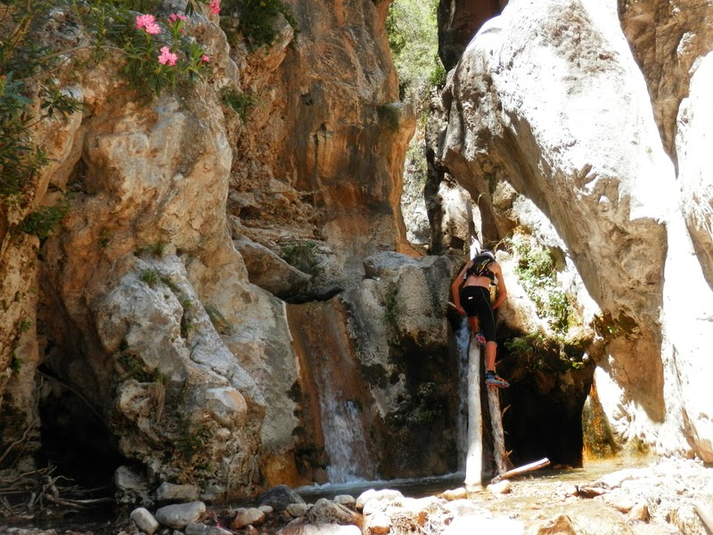 El primer obstáculo a supurar es un resalte de tres metros, pero gracias a un tronco que hay atravesado se hace con facilidad, con ello llegamos al precioso Cahorro del Imán, pequeño pero intenso.