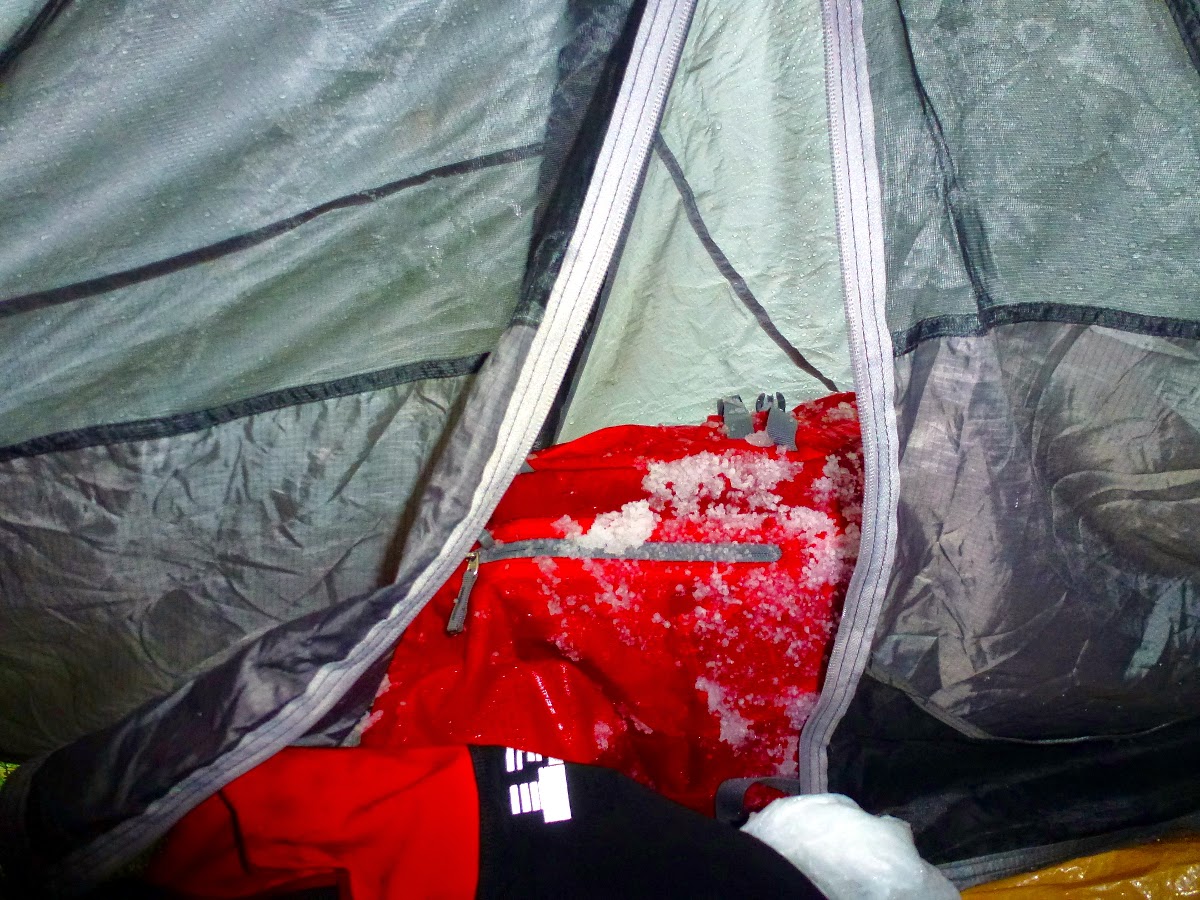 Había llegado ya entrada la noche al refugio libre de Les Riberetes (Vallibierna), sólo había dos personas durmiendo en la tarima de arriba. Sin hacer ruido, cena y a dormir en la de abajo. Por la mañana temprano recogí mi saco y me dirigí hacia la Tuca de las Culebras y el Pico Vallibierna, una doble cumbre de tres miles conocida por el paso que las une, el del "caballo", una arista horizontal, sólida y afilada, impresionante pero fácil de pasar. Antes de cruzar un río, escondí la tienda, el saco y neceseres de cocina, pues la ruta era circular y volvería hasta ese punto. Más o menos estaba de vuelta sobre la una del medio día, había realizado una ruta de unos 20 kilómetros en el tiempo que tenía previsto. Por entonces, el cielo había dado un gran cambio y se estaba cubriendo de nubes negras, me apresure por recoger las cosas que tenia escondida y subir sin detenerme al Ibonet de Corones, unos 300 metros más arriba, por otro barranco, justo cuando empezaba a llover. Se me había olvidado coger el impermeable de la mochila, me preocupaba la cámara de fotos, así que la metí en la funda del saco de dormir. En el momento de montar la tienda empezó a granizar, tuve una sensación extraña de no saber porqué estaba ocurriendo eso, en ese momento pensé, que para disfrutar de una buena noche, tendría que pasar la tormenta. Terminé de montar la tienda, estaba todo empapado, tenía frío, el interior de la tienda se mantuvo seco, me desnude y dentro del saco entré en calor. De vez en cuando me asomaba para ver si la tormenta se había marchado, pero llegó la noche y la tormenta no me abandonó.