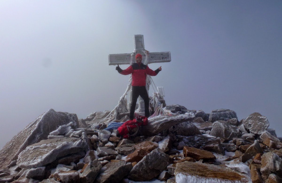 La ascensión se estaba convirtiendo en un infierno, pero lo que más rabia me daba era no poder disfrutar del entorno que me rodeaba. Sin saber muy bien cuanto me queda, no dejo de avanzar con buen ritmo y consigo llegar a la antesima del Aneto, por fin puedo ver ya la cima pero aún no puedo pisarla, me encuentro delante del esperado "paso de mahoma". Este paso es un tramo horizontal de apenas 40 metros pero con una pronunciada caída a ambos lados, se encontraba congelado y el viento golpeaba con fuerzas. Había 3 personas sentadas, intercambiamos saludos, les pregunté pero no se atrevían a pasar, habían subido por la otra vertiente. Sin dudar y sin vacilar atravesé el "paso de mahoma", aun con las inclemencias del tiempo, me pareció bastante fácil de superar. Estaba en el cielo, la cámara no funcionaba bien, me quité los guantes, no conseguía hacer un vídeo, con mucha suerte pude acoplarla en dos rocas y sin que el viento me tirara la cámara sacarme una fotografía para mi recuerdo. Los guantes estaban empapados, las manos se me quedaron heladas, no me detuve mucho tiempo en la cima, le di las gracias, nos abrazamos y nos despedimos hasta la próxima, todo muy natural. Cuando soy capaz de percibir todas esas sensaciones que me produce ese momento en el que tú y yo somos uno, es cuando tengo que luchar contra mi razón, es cuando esa emoción se convierte en realidad, es cuando no distingo, pero tengo que luchar por volver y no quedarme.