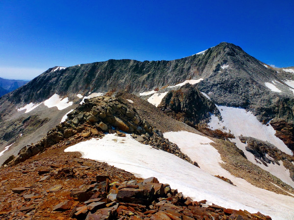 La bajada desde el Perdiguero al Collado Superior de Literola es bastante fácil, algún que otro destrepe donde hay que prestar algo más atención, o sea, apoyar las manos. A continuación la arista se abre paso por varios tres miles, como son la Tuca de Lliterola (3.095 m), el Pico Royo (3.121 m), característico por el color de su piedra rojiza, Punta de Lliterola (3.132 m) y Aguja de Lliterola (3.028 m). Parecen muchos, pero todos están bastante seguidos, la arista, carece de su definición prácticamente en la mayoría de su recorrido, exceptuando algunos pasos.