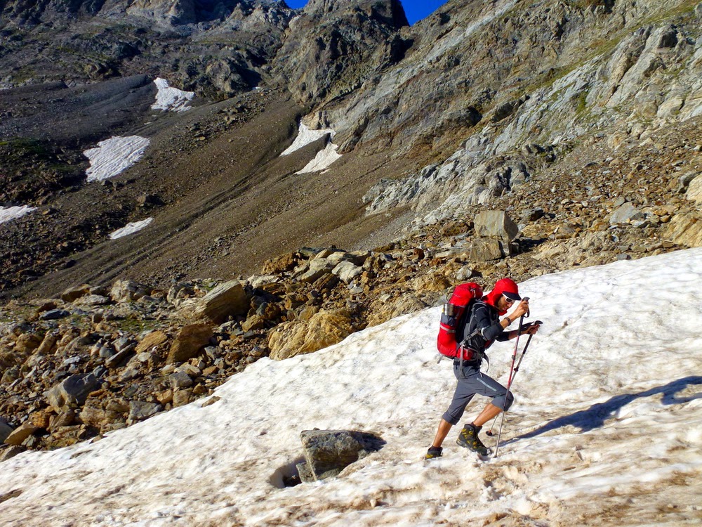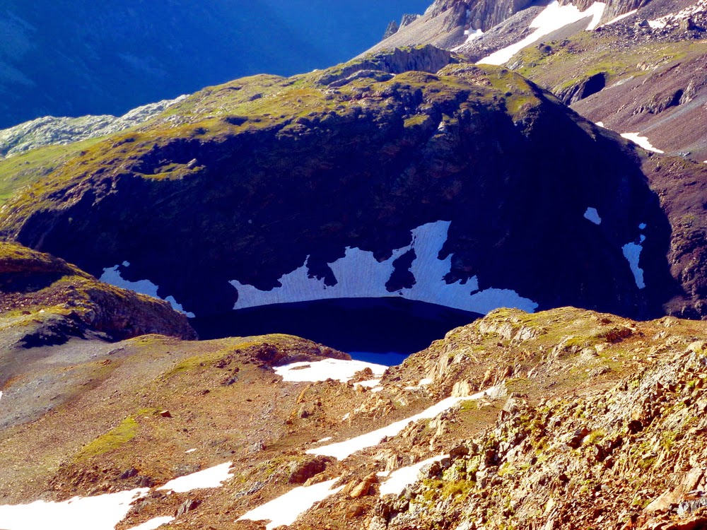 Justo cuando empezaba a dejar atrás el ibón, encontré dos muchachos que ascendían y portaban una cuerda de unos 40 metros, al preguntarle a donde se dirigían con ella, me comentaron que iban a realizar una travesía por la cresta de las Espadas hasta el Posets. Les pregunté el grado de dificultad de la actividad a lo que ellos respondieron que la cuerda la llevaban por precaución. Así que tras indicarme el camino que asciende al collado del Pavots para poder acceder a la cresta, puse mi rumbo hacia allí.