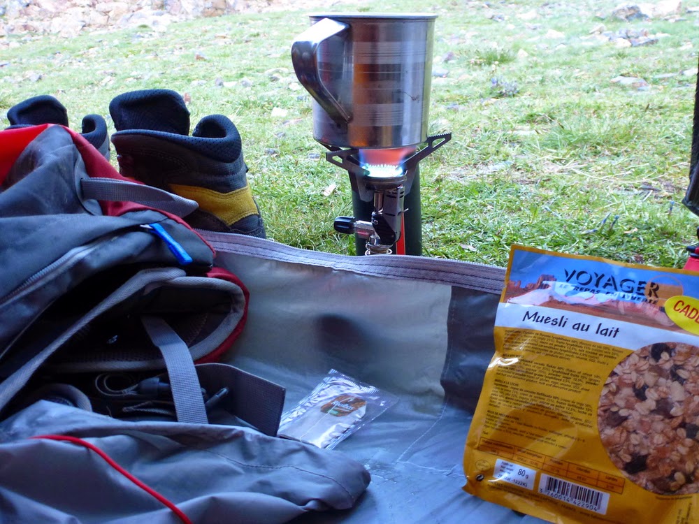 Tengo que reconocer que llegue bastante agotado, había realizado una ruta de unos 2.300 metros de desnivel positivo en 30 kilómetros. No tardo mucho tiempo en prepararlo todo y antes de que se hiciera de noche ya me encontraba metido en el saco leyendo un poco. Con la experiencia, comprende que es mejor prepararlo todo y no relajarte, pues te puede entrar el bajón, es todo una rutina, ya no tienes que pensar para ello, montar tienda, hinchar colchoneta, estirazar saco, coger agua, calentar, comer, lavarse los dientes, etc