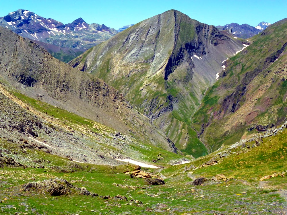 hasta alcanzar el Puerto de Gistaín, se encuentra a unos 2.600 metros. Las vistas al fondo del valle son excepcionales, intenté convencer a mi amigo para que me acompañara hasta el collado, mientras tomábamos un café en el refugio, me contestó que si desde él se vería la cima del Posets, yo sin saber la respuesta le dije que sí, pero el guarda del refugio me corrigió. Ahora, sentado en el collado pienso: Él si que es un soñador.