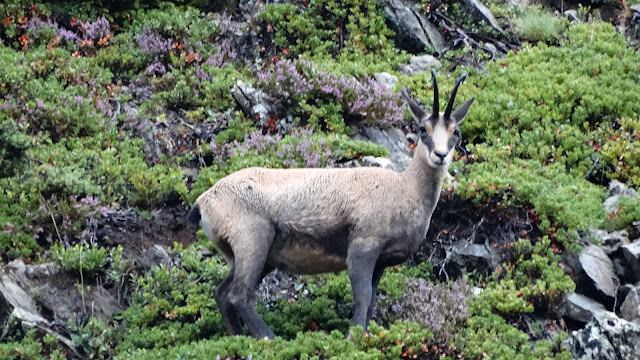 He tenido la suerte de contemplar a un magnífico animal; uno de los símbolos de la montaña Alpina, el rebeco. A una velocidad de vértigo, salta y trepa la pared de roca casi vertical. Estos animales están perfectamente preparados para trepar por los riscos. Sus poderosas patas, tanto delanteras como traseras, les proporcionan una gran capacidad de salto. En las pezuñas presenta afiladas aristas en la parte exterior y una zona interior blanda, lo que les permite apoyarse perfectamente sobre la roca mojada y el hielo. Incluso las crías son capaces de moverse en terrenos rocosos con una seguridad aplastante. Los huecos en la roca son también sus lugares favoritos para descansar y rumiar. Aquí están a salvo de los linces y los lobos.