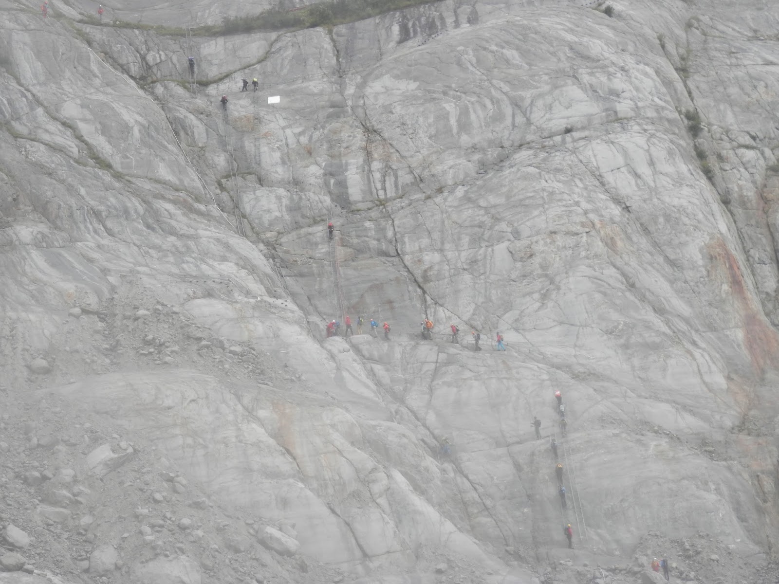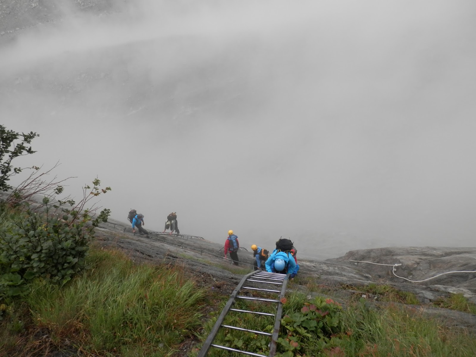 para los mas pequeños. Los senderos están muy bien definidos, en un constante ascenso y sin perdida se llega a la entrada del glaciar. Para acceder a él, hay que bajar por 3 tramos de escaleras verticales enganchadas a la pared. También hay una cuerda, tipo maroma, en un lateral para el mismo fin, es lo que yo utilicé pues las colas que se crean en las escaleras son bastante considerables, ya que la mayoría de la gente va equipada y encordada pues los guías de montaña suelen traer a este glaciar a los clientes para realizar practicas encordados y progresión en hielo.