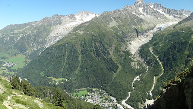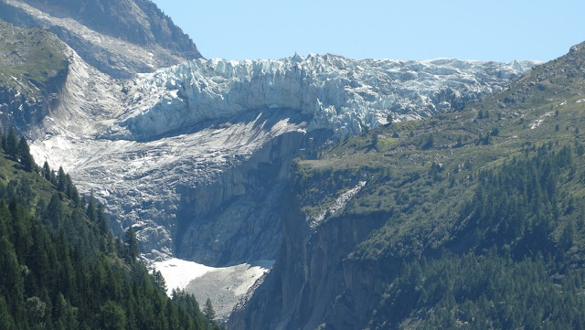 El valle del Arve se originó durante la edad de hielo cuando los glaciares de los Alpes se extendieron más allá de Ginebra. Cada glaciar le da nombre el pueblo al fondo del valle, no hace muchos años, la lengua de cada uno de ellos llegaba hasta el mismo pueblo, desde esta imagen se puede observar el retroceso continuo a causa del cambio climático.