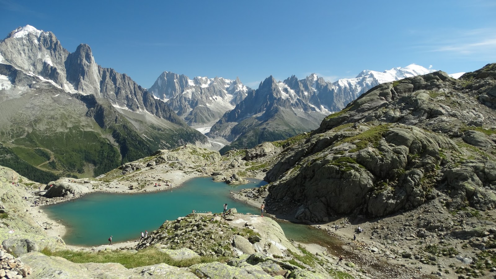 El Lac Blanc a 2.356 metros sorprende por el color azul celeste del agua, causado por la concentración de mineral calcáreo que arrastra el agua en esa zona. Los contrastes de colores del agua azul celeste, con las montañas, la nieve, el azul del cielo crean un lugar que parece mágico. Encontré los Lagos con una