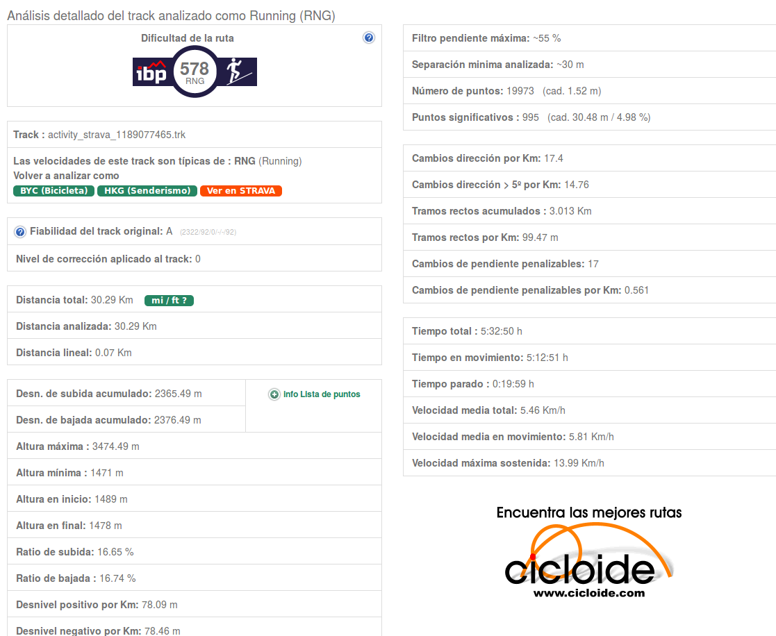 En el mes de Noviembre, realicé una ruta muy recomendada, la cual tengo muchas ganas de volver a estar en forma para realizarla nuevamente, y es partiendo desde Capileira, subir hasta el Mulhacen y vuelta a Capileira, ruta lineal de ida y vuelta por la central eléctrica, aunque hay alternativas muy recomendables para hacerla circular. Con una distancia total de 30 kilómetros y 4.740 metros de desnivel acumulados, son números muy a tener en cuenta. Se puede ver el resultado del análisis IBP en este enlace, dando como resultado 578. Si buscáis análisis de rutas conocidas y carreras populares como por ejemplo los 101 km de Ronda o la Subida Internacional Granada Pico del Veleta, os podéis llevar una gran sorpresa, ya que analizando estas carreras, su resultado IBP no es mayor que la ruta realizada desde Capileira. Carreras como Ultra Sierra Nevada o Bandoleros si están muy por encima de los 578 obtenidos de esta ruta. Más allá de comparativas y análisis, me sigue enamorando esa sensación de levantarme un Domingo cualquiera para realizar una ruta desconocida, y al llegar a casa, ser consciente de lo afortunado que soy.