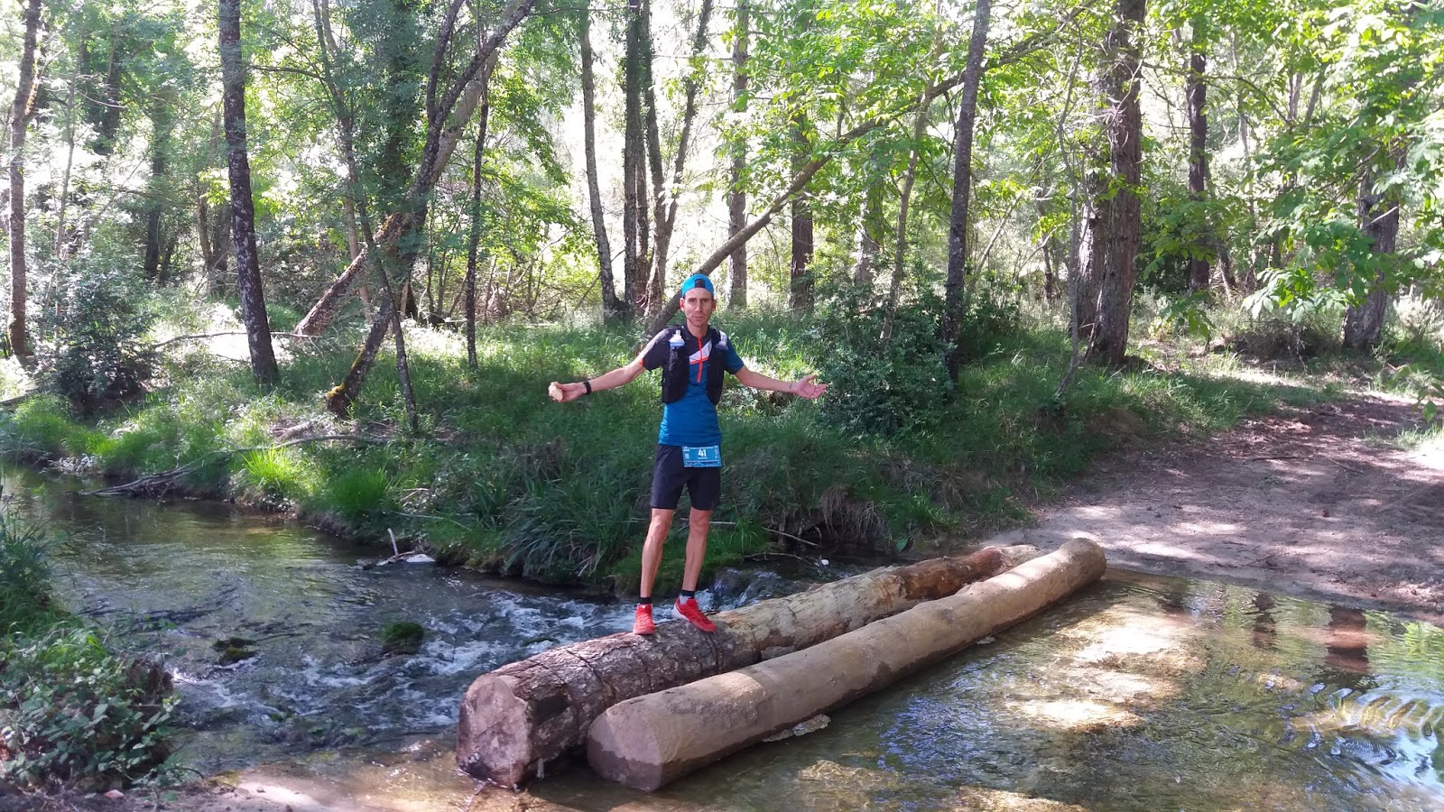 Cuando esperamos mucho de algo, es muy fácil que ese algo nos defraude, pero si esperas lo mismo que hayamos sido capaz de darle, todo es un plus y beneficios y eso se puede apreciar en las carreras. La subida desde Arroyo Frío era dura, se me hizo dura, pero dándole un esfuerzo continuo llega la recompensa, siempre llega, al igual que el final de la subida. Las bajadas me costaba más trabajo de lo previsto, incómodo, no quería forzar demasiado las articulaciones, tendones y músculos pues los notaba demasiado rígidos, quizás poco hidratados. En el avituallamiento de Vadillo Castril, kilómetro 83, me como un pedazo de bocadillo, me acompaña mi pareja, salimos juntos, quiere fotografiarme cruzando los dos arroyos por los maderos, más no podemos pedir. Y es que en las carreras sólo damos esfuerzo, como beneficio propio, para el ego, a cambio, tenemos una organización con voluntarios y personas acompañándonos en los momentos buenos y malos, capaz de realizar actos por nuestro bien y por nosotros, a veces, incluso se lo devolvemos con mala cara, así somos los corredores pero solo a veces. En el Puente de la Herrería, una construcción sencilla con arco de medio punto y realizada con piedra toba, por donde cruzamos al joven río Guadalquivir, nos juntamos con los corredores que vienen de la Maratón, esto no es siempre positivo, pierdes las perspectivas competitivas de la distancia ultra y la noción sobre el esfuerzo se altera. En solitario y a veces acompañado de corredores con bastante buen humor, no todos, alcanzo el último avituallamiento útil, la Fuente del Oso, kilómetro 89, donde el sol aprieta, esta parte no tiene sombras, la vegetación es la típica mediterránea, pido una silla y me siento unos minutos, a la sombra.