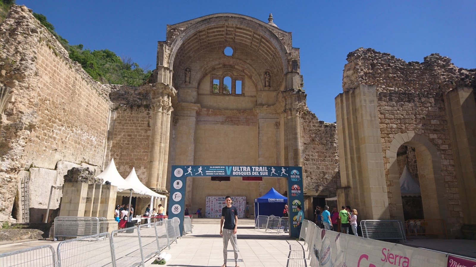 La carrera sale desde la localidad de Cazorla, un municipio para perderse, adentrarse y encontrarse con la madre naturaleza. Pero además de su gran riqueza paisajista, cuanta con una gran historia artística y cultural que en esta ocasión centró mi atención sobre la iglesia Santa María, lugar donde estaba ubicada la meta y la entrega de dorsales, mágico y único. De este templo queda sólo las ruinas, que no es poco, ya que nos permite imaginar la magnificencia de la construcción. Se trata de la única iglesia en Europa que está construida sobre un río, el Cerezuelo, que a su vez contiene un precioso sendero por su orilla, perfecto para el día después de la carrera. Para esta construcción se tuvo que realizar una gran obra arquitectónica; una bóveda que canalizara el río y que a su vez, serviría para construir la plaza justo delante. Así pues, el río entra por debajo del altar mayor, la atraviesa por completo y continúa su curso bajo la plaza de Santa María, tras la cual las aguas vuelven a aparecer al aire libre por una pequeña pero bonita cascada. Se sabe que a finales del s.XVII hubo una gran tormenta, que el río arrastró tanto material que atoró el conducto subterráneo y por tanto la corriente desbordada pasó por encima arrasando la iglesia, dejando los restos que se conocen hoy en día. Por si no fuera poco, años más tarde, en la Guerra de la Independencia, pasaron por aquí las tropas napoleónicas que probablemente hicieran algún destrozo más. Recomendable contratar un guía para realizar una visita por las zonas más emblemáticas y poder revivir episodios históricos en la ciudad "adelantada".