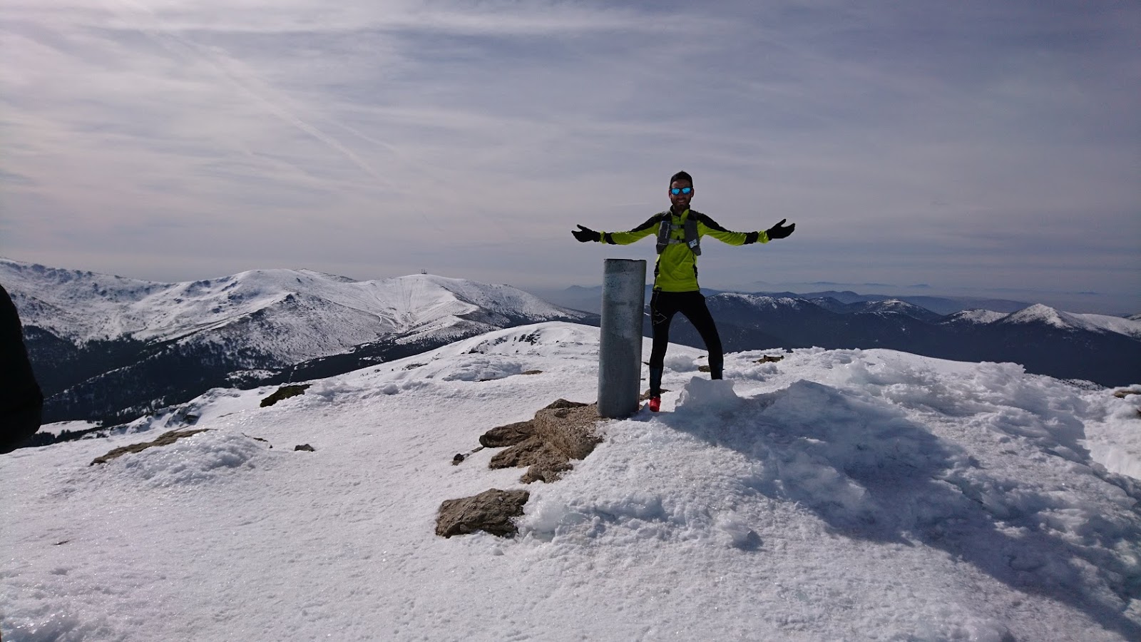 Hay que reconocer que el paraje por donde discurrió toda la subida tiene un gran encanto, ríos, bosques, crestas y unas magnificas vistas. El Pico Peñalara es un lugar recomendado al que subir. Para ser invierno, me encontré unas condiciones muy buenas para la practica del trail, corriendo en mangas cortas la mayor parte del tiempo. La nieve excepto en las zonas más expuestas, estaba perfecta, tanto para subir como para bajar sin la utilidad de crampones. Sólo me quedaba ir hacia abajo, corto descenso, debido a la afluencia de personas desde el Puerto de Cotos, consistió en dejarse caer, a veces corriendo y a veces patinando sobre la nieve, sin preocuparme por la orientación, disfrutando como cuando era un niño pequeño y me llevaban de excursión a Sierra Nevada con mi plástico en la mochila para deslizarme por la nieve.