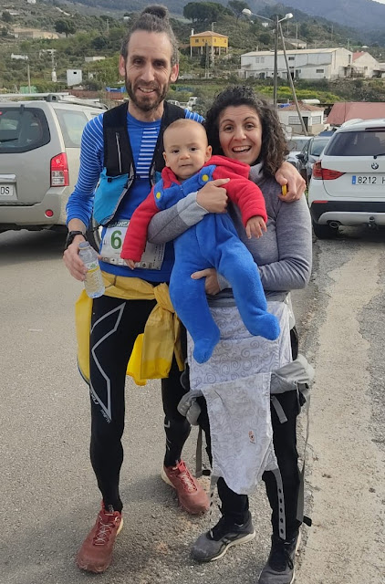 No es necesario hablar de cuantas horas me consume el trabajo, el camino al trabajo, la familia, cuantas horas duermo o cuantos días a la semana entreno. Todo eso no importa porque este es el ejemplo que quiero dar y dejar a mi hijo, trabajo, constancia y determinación. Para ti esta entrada, gracias por empujarme hijo, recogimos los frutos. Claro, no podría ser de otra forma, dar las gracias también a mi mujer por acompañarme en esta carrera e ir por algunos avituallamientos. Ahora, cuando nos vemos, ya no carga con geles ni bebidas, ya no es necesario que me entregue nada, ahora, entre sus brazos asoma un pequeño repleto de energía que su padre está loco por ver, es suficiente, de lo demás me encargo yo. A mi padre, por "dejarme ser", que sepas que te tengo un gran aprecio y aunque no entienda mucho esto de pagar por correr por el monte, es saludable tenerlo cerca, al igual que el correr y el monte. Gracias a la organización de la Pinsapo, por esta gran carrera en este gran entorno. Entre todos han ayudado un poquito a desarrollar la próxima generación.